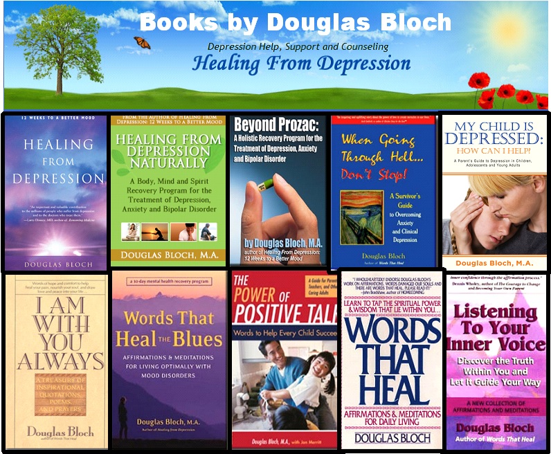 My name is Douglas Bloch. I’m an author and depression survivor. For all of my adult life, I’ve battled a treatment resistant depression and anxiety that would not respond to medication. Fortunately, after much trial and error, I was able to create a “body-mind and spirit” mental health recovery program that has allowed me to live optimally and to reduce my symptoms of anxiety and depression.