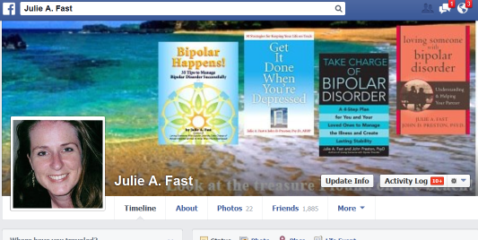 Facebook bar  I just posted some great bipolar disorder management tips on my Facebook page.  You can find me at Julie A. Fast.  Please note that I don’t use my fan page for posting.